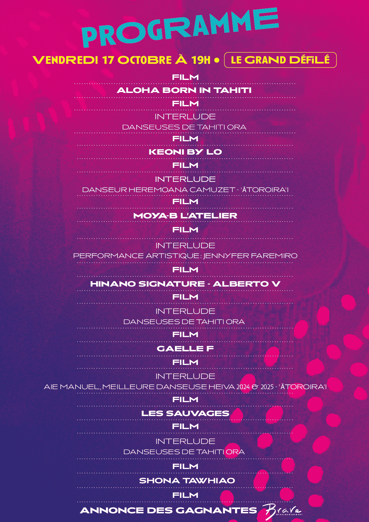 Avant-première du film documentaire inédit retraçant l'histoire de la Tahiti Fashion Week avec présentation des 12 candidates au concours de mannequins Brave Models Management habillées chacune par un artisan du Service de l'Artisanat traditionnel. Un After avec DJ au SurfHouse du Kon Tiki sera proposé à la fin de la projection.